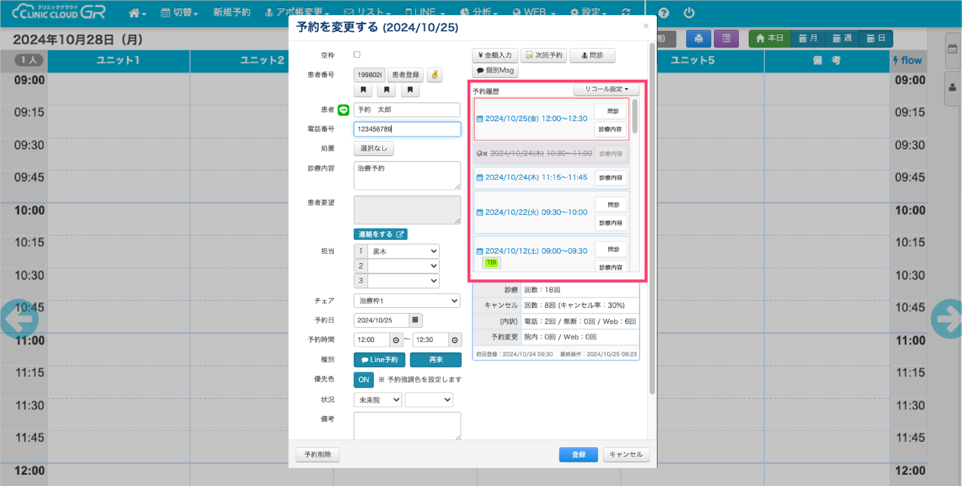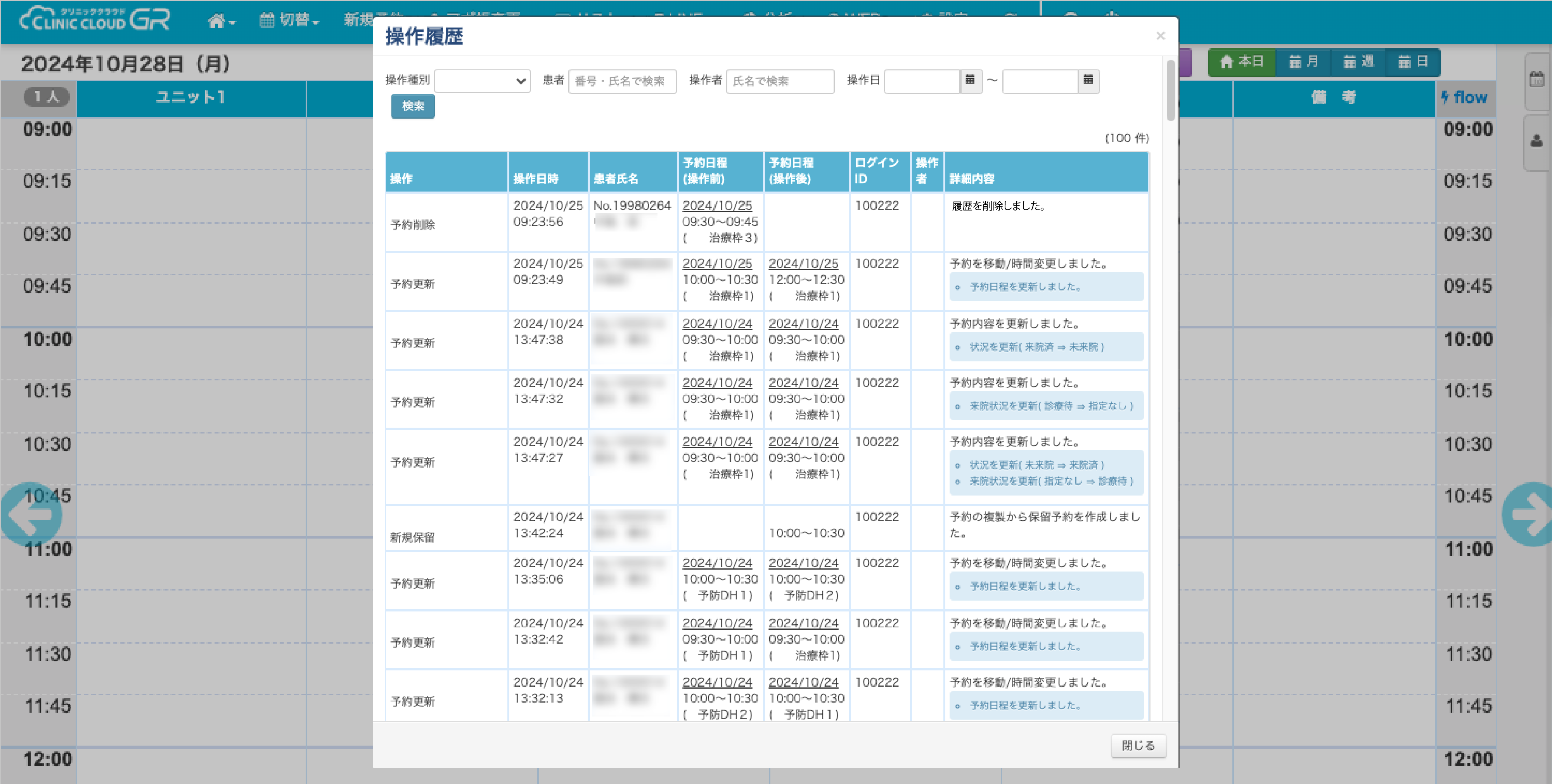 「予約詳細の履歴」機能アップデートのお知らせ 投稿日 2024年10月29日 ABOUT 「予約履歴」を削除できるようになりました。電話・無断キャンセルリストに誤って入れてしまった場合に修正ができます 1.履歴は、 「予約詳細」>「予約履歴」>「診療内容」 のゴミ箱のアイコンから削除ができます 2.「予約履歴」を削除すると統計データも修正されます 3.削除の履歴は 「設定」>「操作履歴」 から確認ができます ← 「問診票」アップデートのお知らせ → 「シフト管理」機能アップデートのお知らせ