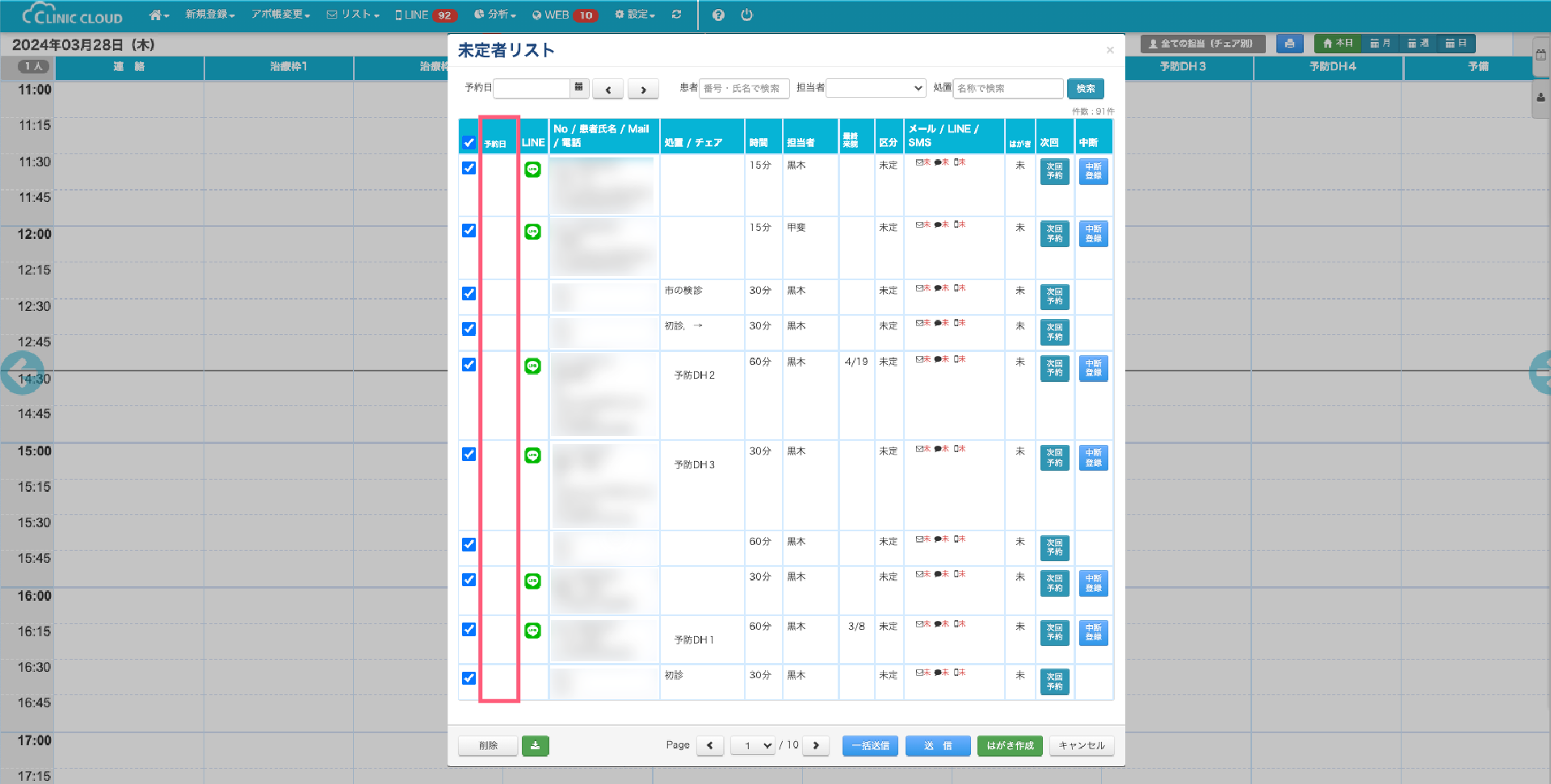 お客様のご要望が多かったため「未定者リスト」に入れた予約枠は全て「治療続き」が利用できるように仕様を変更しました