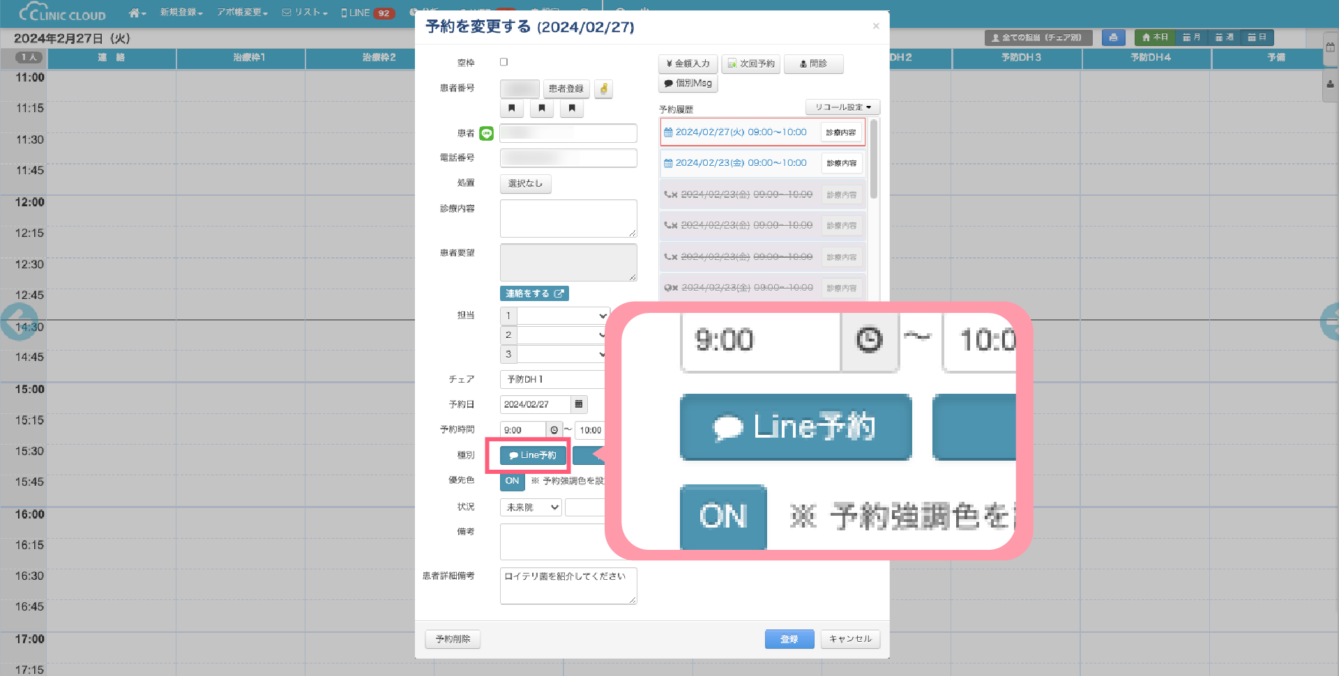 1-2.「LINE」からの予約の場合には「Line予約」に自動で設定されます