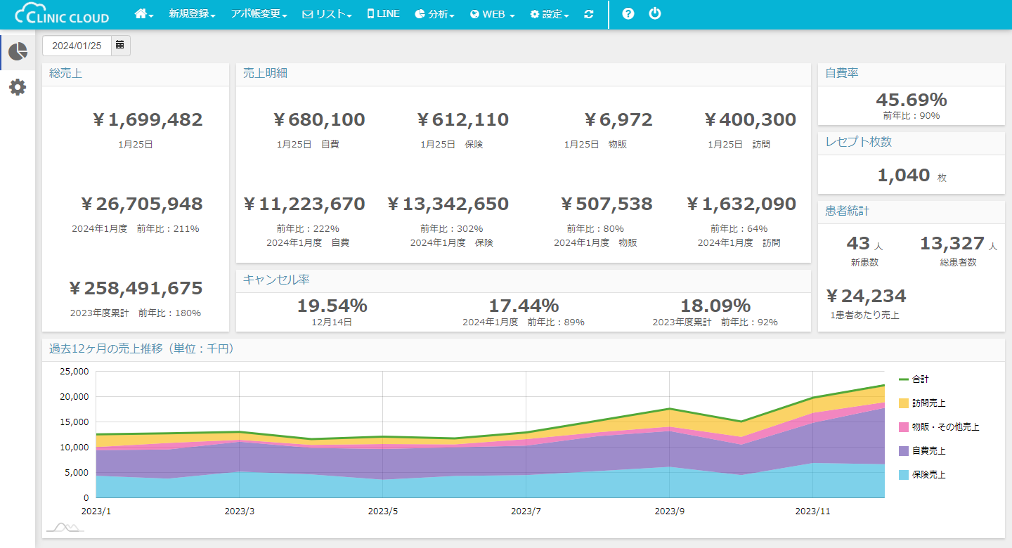 統計ダッシュボードは、現在、当社カルテクラウドご契約医院様のみご利用いただけます。他社レセコンとの連携も進めています、詳細は改めて発表いたします。