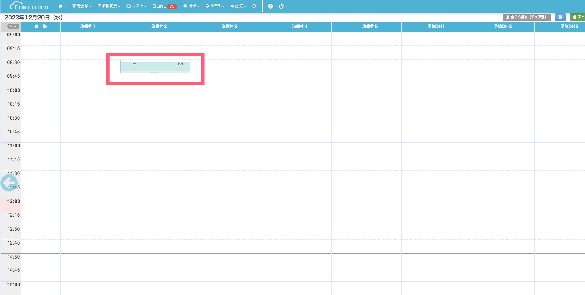 1.アポイント帳上の予約枠がなく、空枠を作成したい箇所にカーソルを置き右クリックをしてください
