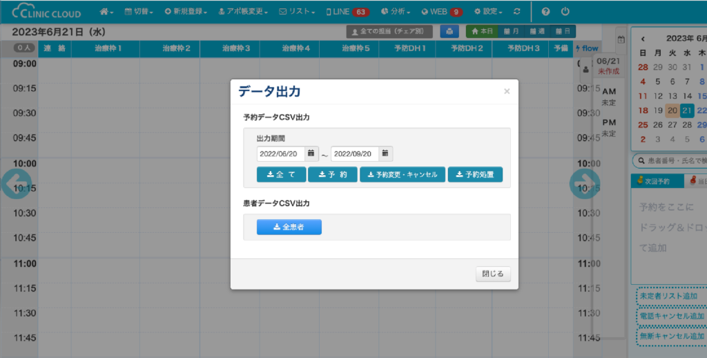 予約データの出力期間についてのお知らせ 投稿日 2023年6月21日 ABOUT 予約データの出力期間が「全て」の項目のみ3ヶ月ごとになりました。 予約データ出力の方法はこちら> 予約データの出力期間が「全て」の項目のみ3ヶ月ごとになりました 画面は開発中のものですので、変更になる場合がございます。 ← 保留枠・未定者リストアップデートのお知らせ → システム障害のお詫びと経緯